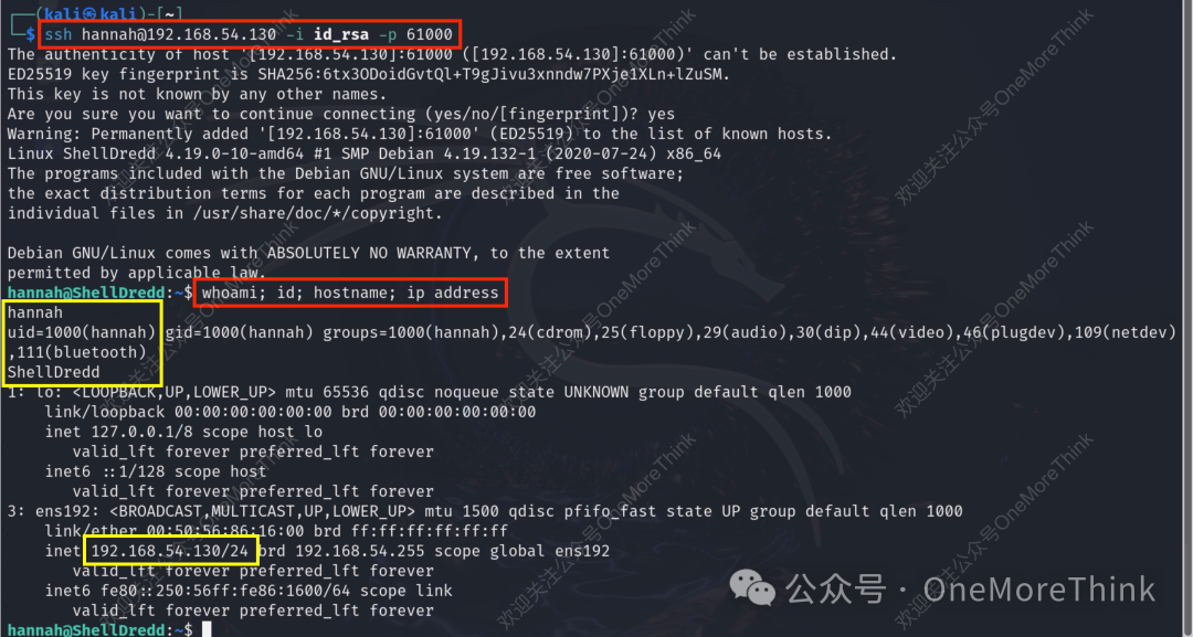 使用私钥文件登录61000/SSH服务,获得hannah用户权限。