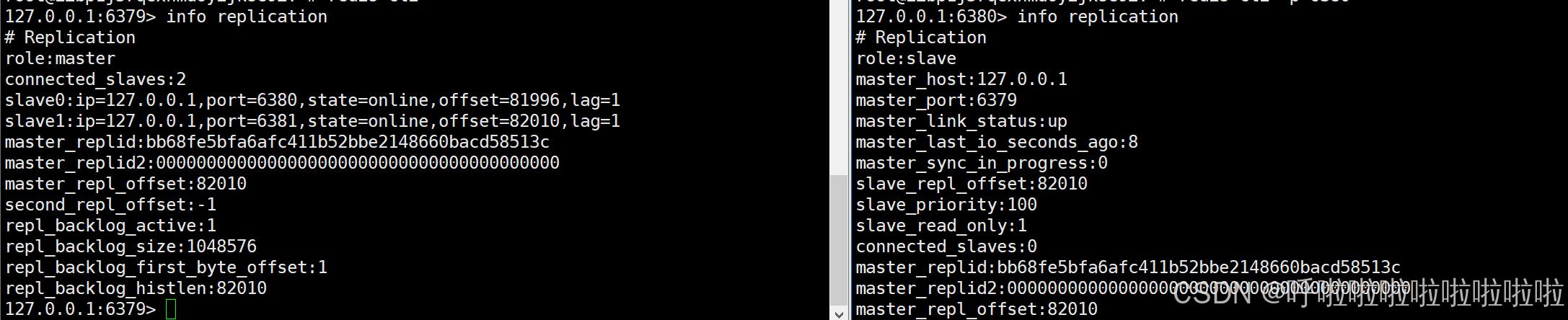 如果从节点和主节点上的偏移量一致,说明已经同步了~