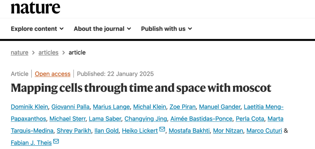 近期,德国慕尼黑工业大学Fabian J. Theis团队一项发表在《Nature》期刊上的《Mapping cells through time and space with moscot》研究介绍了一个名为Moscot(multi-omics single-cell optimal transport)的新型计算框架,突破上述限制,成为首个支持多模态、可扩展、统一API的时空单细胞分析工具。