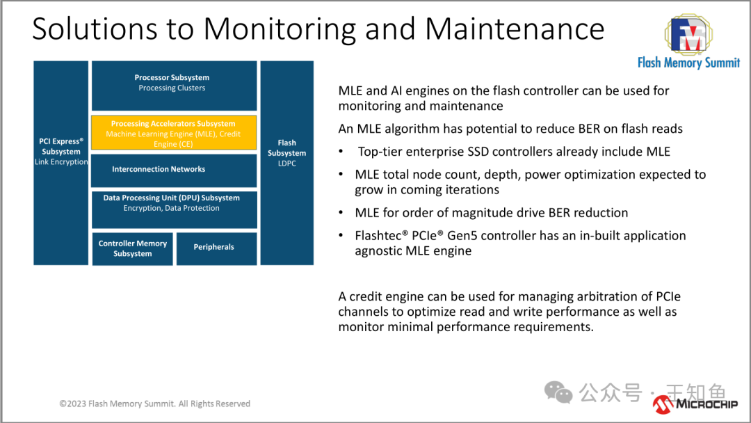 - 2. 强调监控和维护的重要性,提出了机器学习引擎(MLE)和信用引擎(CE)等算法来提高闪存读取的BER率,并探讨了如何利用闪存控制器进行调试。