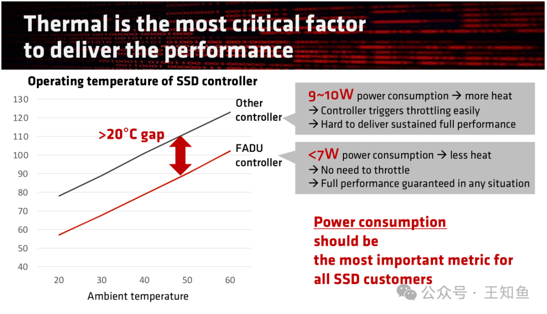 图主要阐述了热量管理对SSD性能的关键影响,并比较了FADU控制器与其他控制器在热量管理方面的优势:
