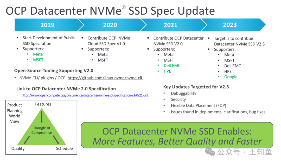 Meta 在开放计算平台(OCP)持续贡献数据中心级 NVMe SSD硬盘接口规范。