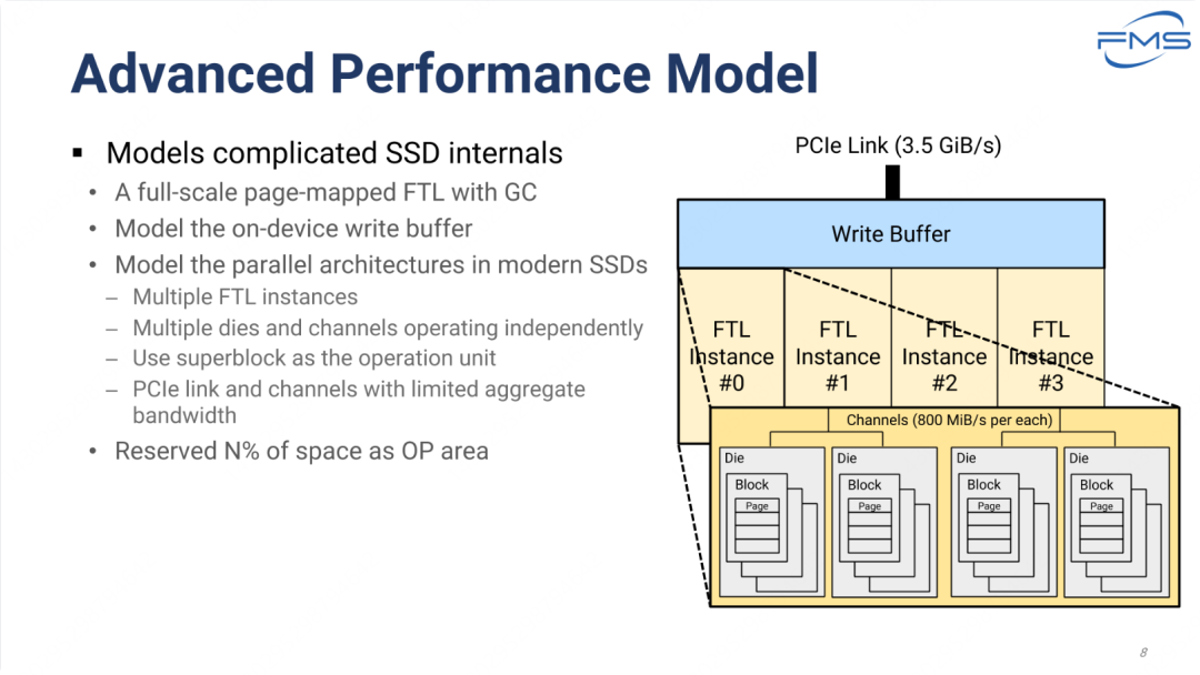 高级性能模型模拟了复杂的 SSD 内部结构,包括以下特性