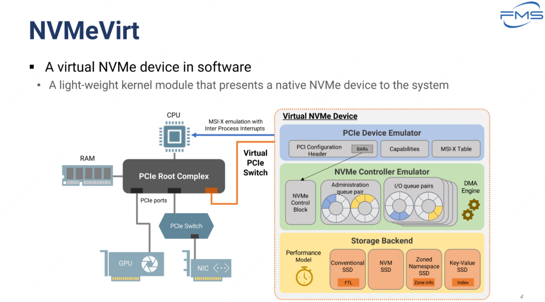NVMVirt 是一种基于软件的虚拟化 NVMe 设备,使用轻量级内核模块实现