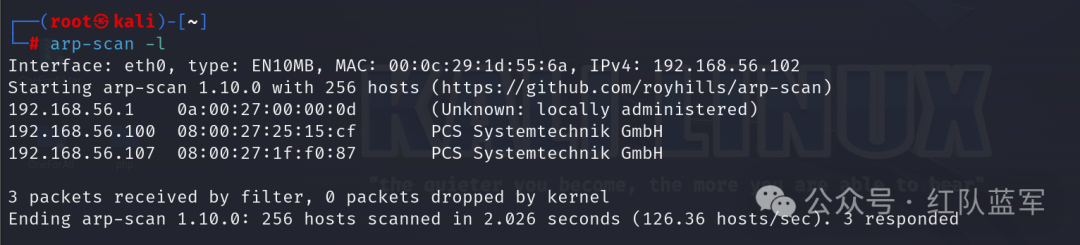 netdiscover -i eth0 -r 192.168.56.0/24