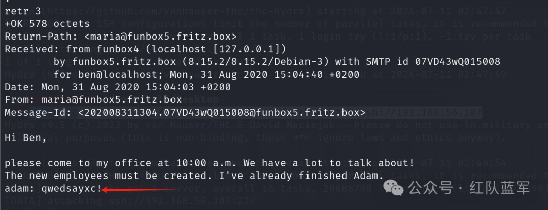 查看578邮件,得到用户名 / 密码 adam: qwedsayxc!