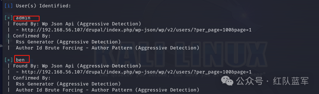 网站由WordPress,利用 wpscan 进行扫描对用户进行枚举,发现两个用户
