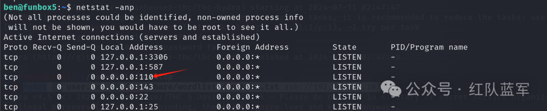 查看后台监听端口