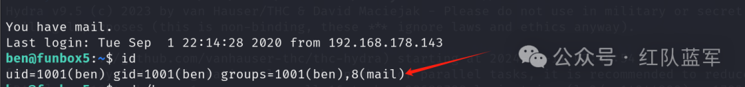 ben用户属于附属组 mail (GID 8)。这在管理用户权限和访问控制时非常有用。例如,属于 mail 组的用户通常会有权限访问与邮件服务相关的资源或文件。