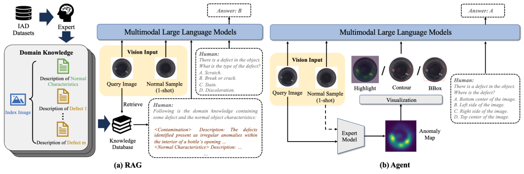 1.缺乏质检知识:MLLMs在训练过程中很少接触到工业质检领域的专业知识,导致它们对特定产品的缺陷类型和异常模式理解不足。