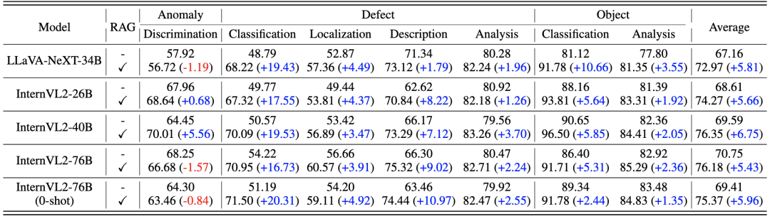 2.通过文本或视觉提示改进检测效果:通过适当的文本提示或参考图像,MLLMs能够提升异常检测和分类的准确性,尤其在使用检索增强生成(RAG)和模板图像对比时,模型表现更好。