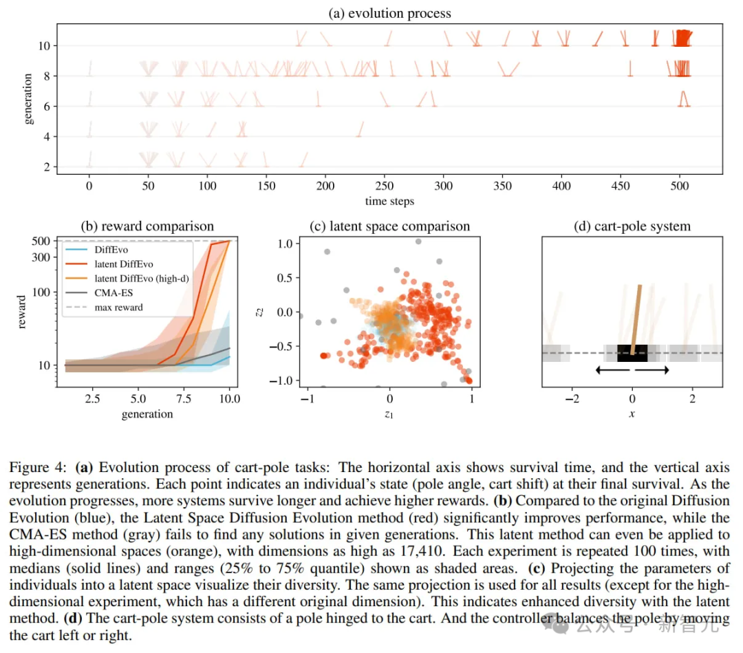 在另一项实验中,研究人员提出了 Latent Space Diffusion Evolution,灵感来自潜在空间扩散模型 (通过探索低维潜在空间来解决高维参数空间的问题)。