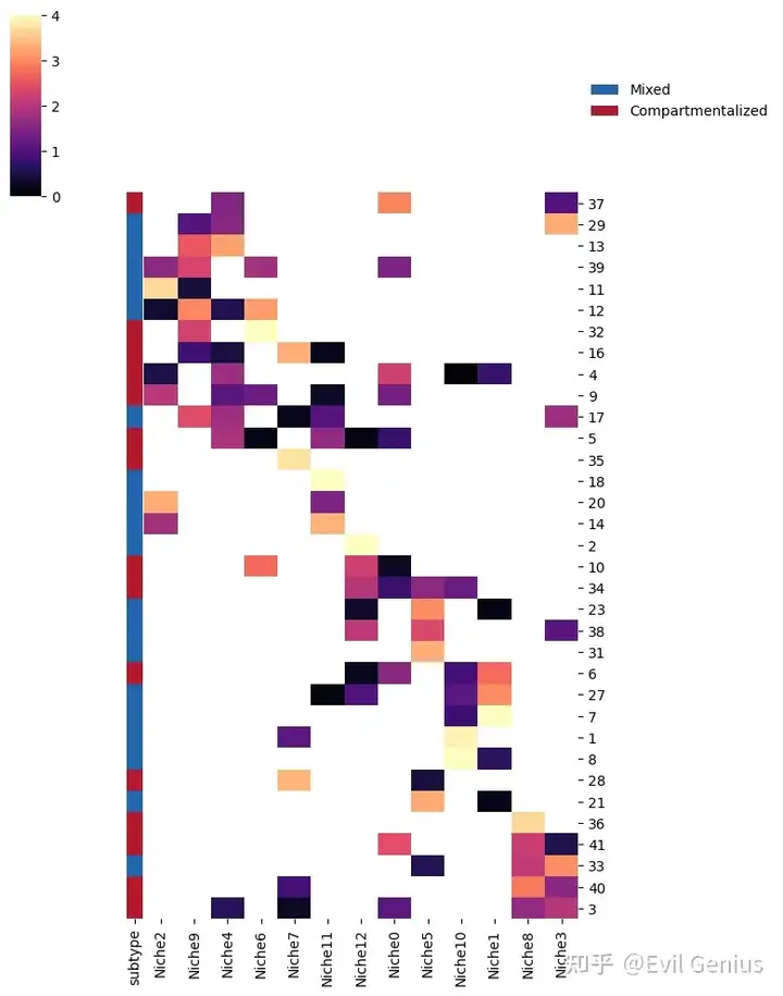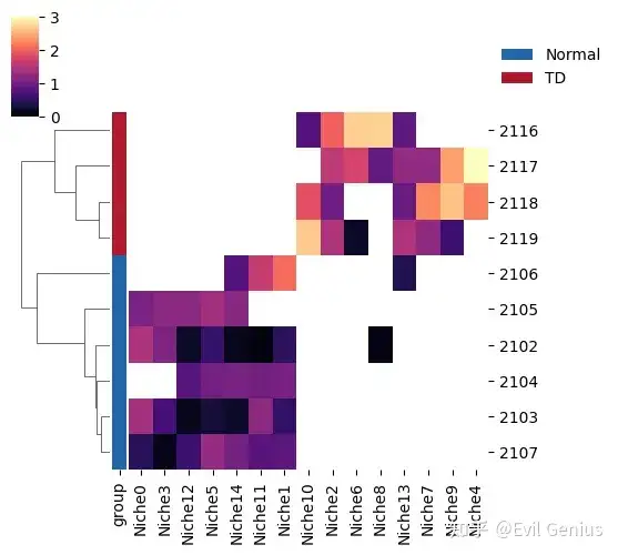 row_order = ['Niche11', 'Niche5', 'Niche3', 'Niche9', 'Niche2', 'Niche10', 'Niche1', 'Niche12', 'Niche8', 'Niche0', 'Niche4', 'Niche6', 'Niche7', ]