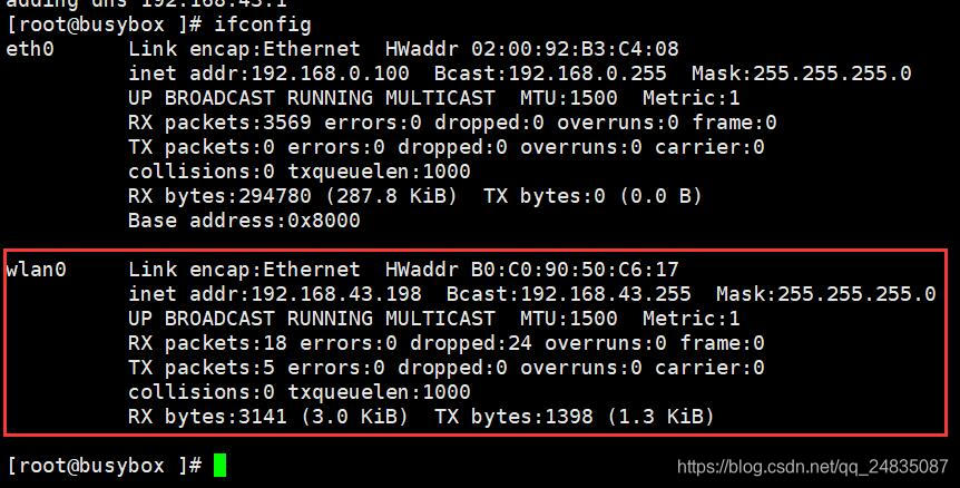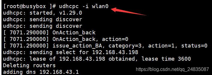 udhcpc -i wlan0 //-i指定网卡