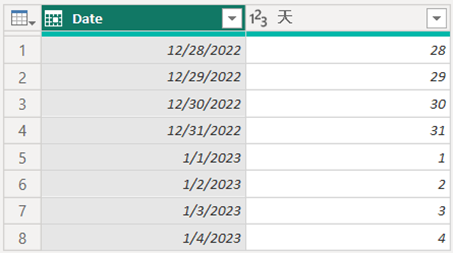 举例:每月第几天
