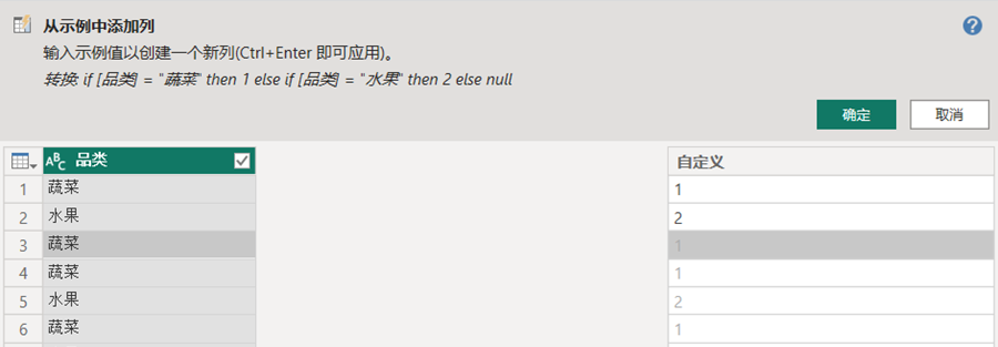 STEP 2 在具有代表性的行输入对应的你想要的结果,计算机会在上方询问你的意思,如果它的理解准确,点击确定。