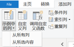 STEP 1 点击菜单栏添加列下的示例中的列,选从所有列或从所选内容,让计算机按照所有列/所选列去理解你的意思,通常选后者,更容易让计算机找到规律。