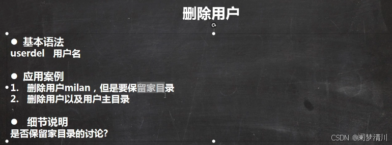 userdel tom就是删除这个用户,但是保留家目录;