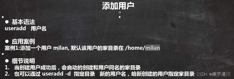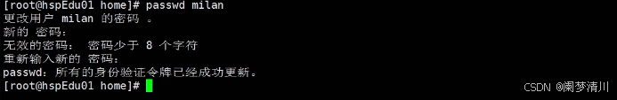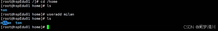 然后就是使用我们的这个指令添加了这个milan这个用户;
