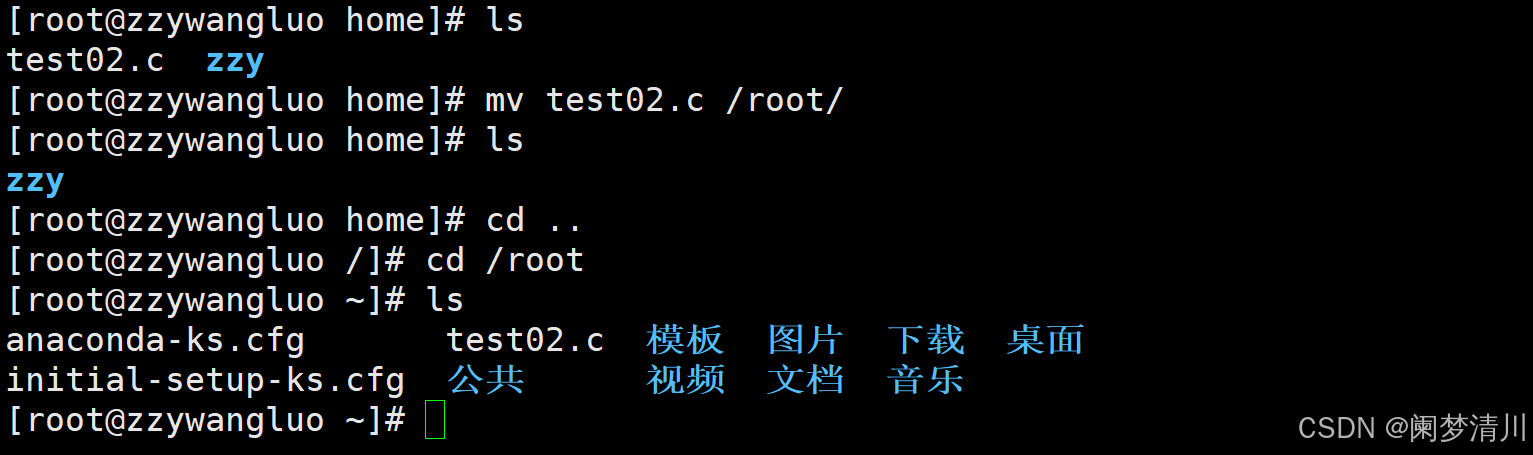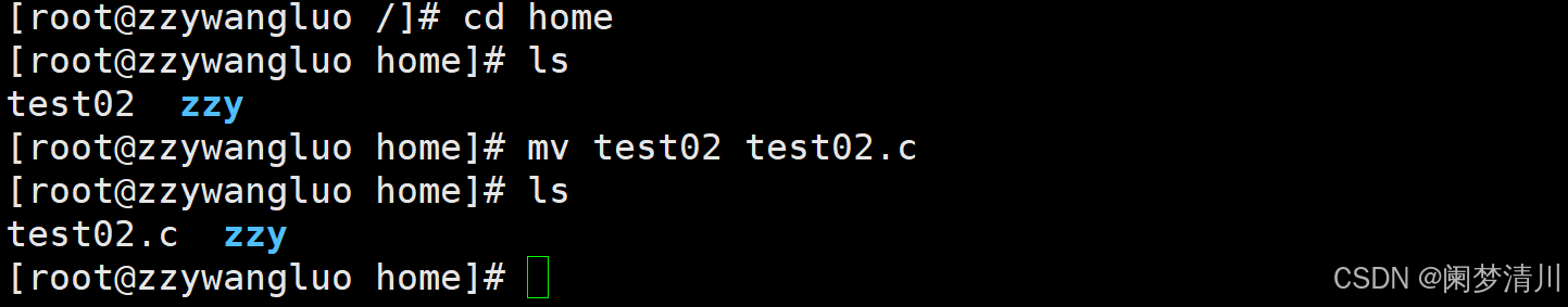 我们可以看到,在我的这个home下面是有一个叫做test02的文件的,这个时候,对于这个文件在这个目录下面使用mv就是对于这个文件进行重命名的操作;