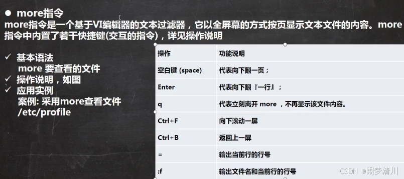就是在原来的这个基础上面加上 | more,也是可以查看这个文件内容的,可能是更适合阅读的版本,因为当我们的这个文件的内容量比较大的时候,我们的普通的cat就需要我们自己去手动的翻动,但是这个more里面内置了若干个快捷键;
