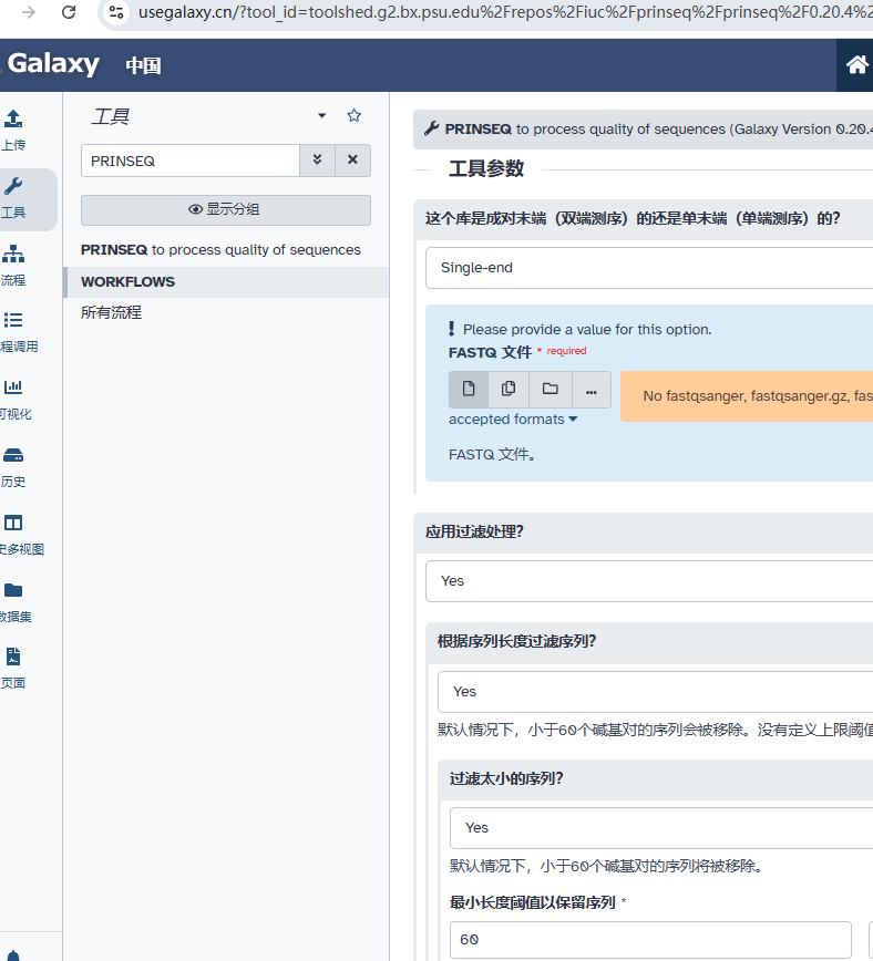 PRINSEQ是一个功能强大的生物信息学工具,它不仅能帮助你快速处理和分析高通量测序数据,还能生成详细的统计图表,让你对数据的质量一目了然。如果你觉得命令行操作太复杂,别担心,PRINSEQ已经集成到了Galaxy生信云平台(网址:usegalaxy.cn)。在Galaxy平台上,你可以直接上传数据,通过图形化界面操作PRINSEQ工具,无需安装任何软件,操作起来非常方便。Galaxy平台还保留了所有分析的元数据,方便你随时查看和分享分析结果。