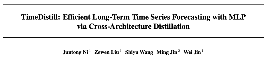 论文标题:TimeDistill: Efficient Long-Term Time Series Forecasting with MLP via Cross-Architecture Distillation
