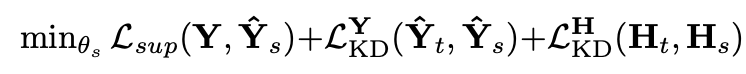 其中即学生模型的预测,即学生模型的中间特征,S即预测长度,D即中间特征维度,C即变量数量。下标为t即代表教师模型。