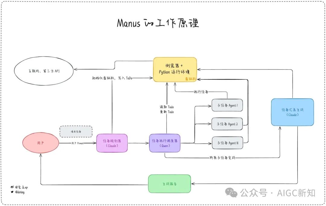 此外,尽管Manus被描述为非多智能体架构,但它却采用了多模型协同的"多重签名"机制。这种机制由多个独立AI模型共同驱动,以确保决策和结果的可靠性。这种看似矛盾的信息表明,Manus虽然在用户交互层面表现为单一智能体,但在内部实现上可能采用了多模型协作的方式,以提高结果的准确性和可靠性。