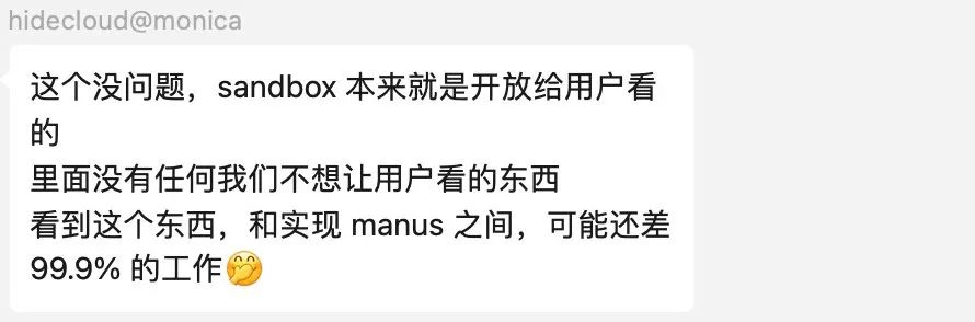 有用户简单地要求Manus提供"/opt/.manus/"下的文件,结果获得了其沙盒运行时代码,这一事件更是引发了技术社区的广泛讨论,让人们对其底层架构产生了浓厚兴趣。