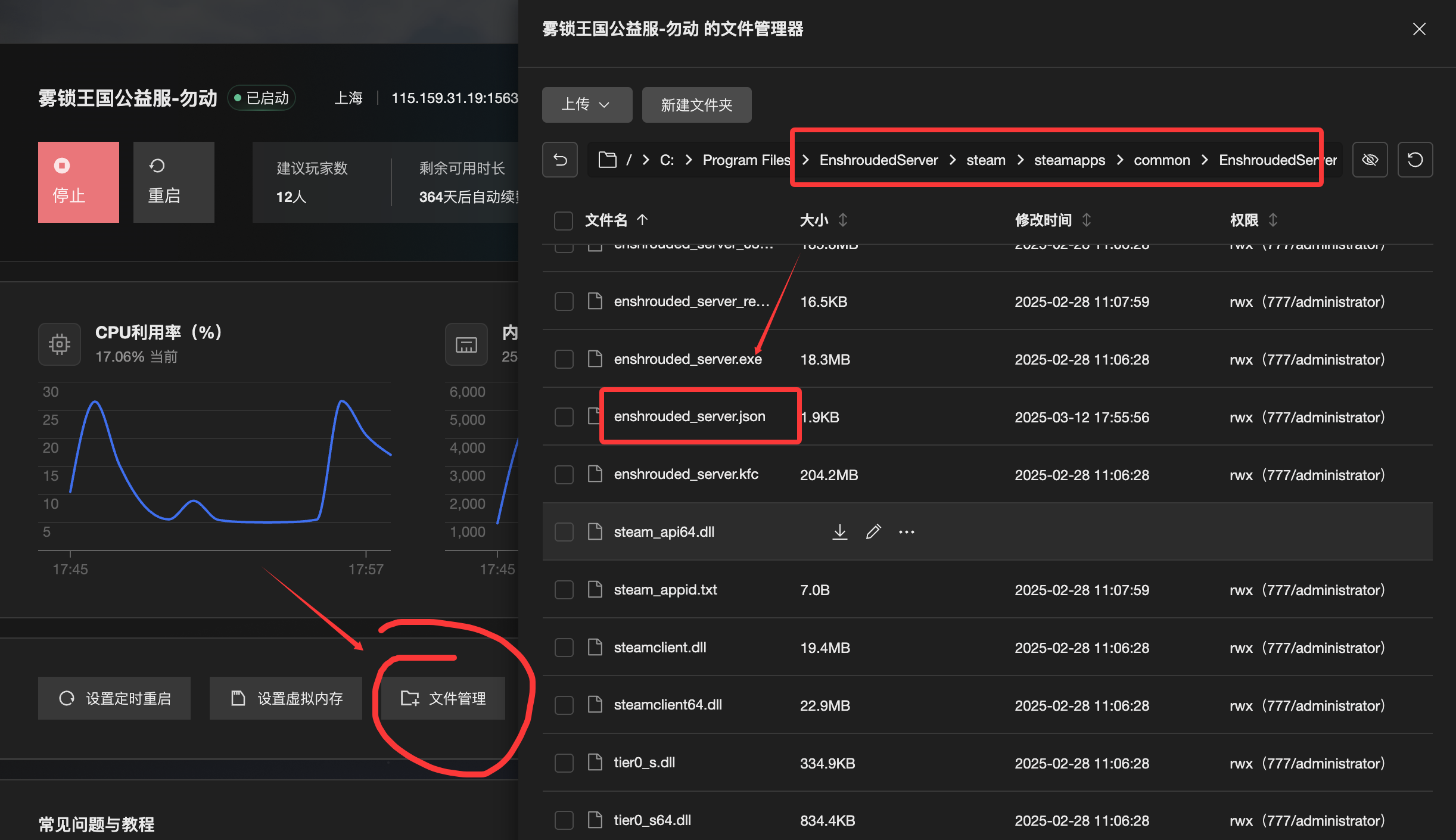 如何借助“文件管理”功能,在腾讯轻量云·游戏服专区,为《雾锁王国》设置房间密码