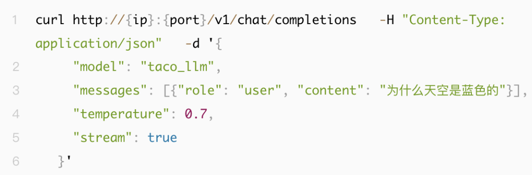 创建完成后,环境会自动拉起TACO加速版DeepSeek模型服务,可直接使用兼容openai格式的api进行调用测试。