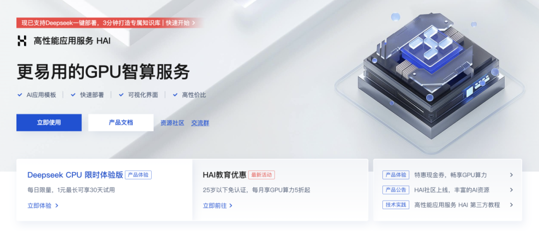 HAI x Deepseek 1元限时活动强势来袭,羊毛先到先薅