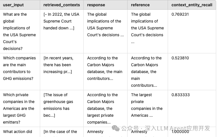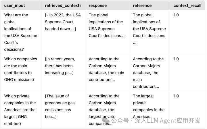。每一项都是一个数组列表,要注意的是,答案、上下文和基本事实和问题列表是一一对应的,即第一个问题的答案也必须是 answer 中的第一个元素,同时也必须是上下文和基本事实的第一个元素。其中上下文的每个元素都是一组字符串数组,这是因为每个问题都可以有多个上下文。