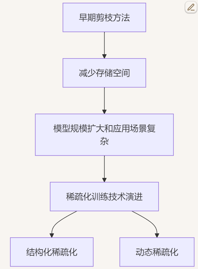 稀疏化训练是一种通过引入稀疏性来减少模型参数数量和计算复杂度的技术。其发展经历了多个阶段,从最初的简单剪枝方法到如今的复杂稀疏化策略。早期的稀疏化训练主要关注于去除模型中不重要的参数,以减少存储空间。然而,随着模型规模的不断扩大和应用场景的日益复杂,稀疏化训练技术也在不断演进,逐渐形成了包括结构化稀疏化、动态稀疏化等多种方法在内的完整体系。