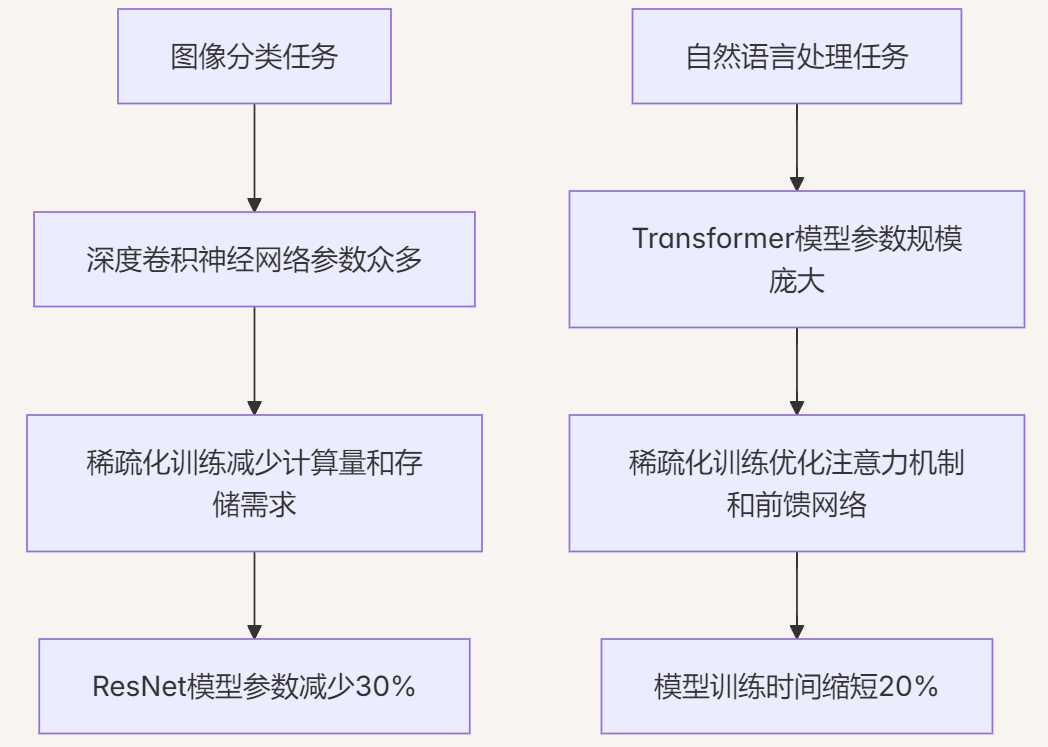 在图像分类任务中,一个深度卷积神经网络通常具有数百万甚至数千万的参数。通过稀疏化训练,可以将模型中的部分参数设置为零,从而减少计算量和存储需求。例如,使用稀疏化训练技术对ResNet模型进行优化,在不降低分类准确率的前提下,成功地将模型参数减少了30%以上。