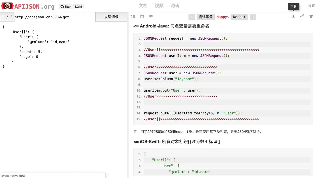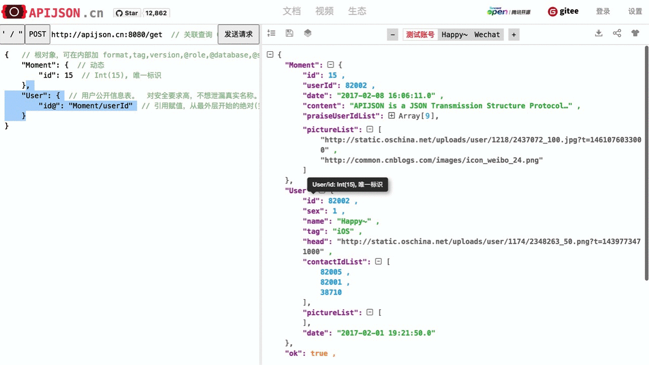 -d '{"User":{"@column":"id,name"}}'跨表联查: