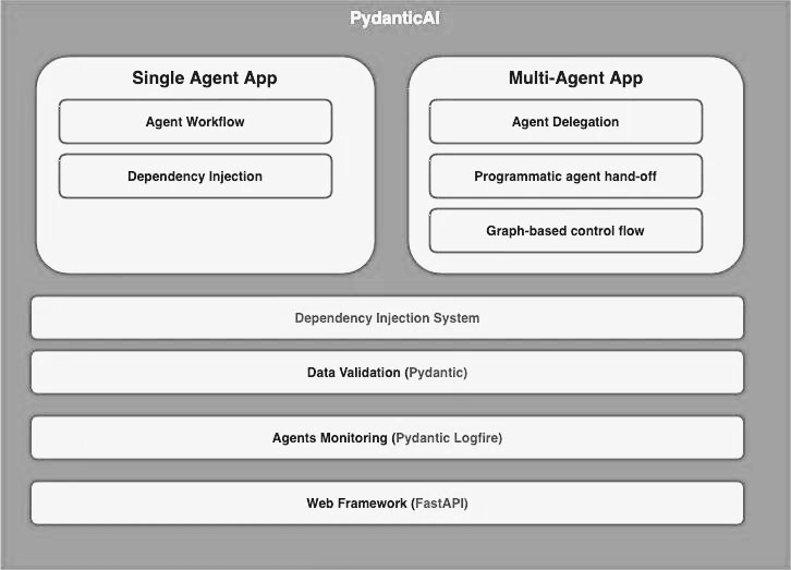 PydanticAI 借鉴了 Pydantic 和 FastAPI 的设计理念,非常适合那些希望与企业现有技术栈保持一致,同时追求开发效率的团队。它特别适合处理简单的应用场景,尽管目前框架仍在不断发展和完善中,但已经展现出了强大的潜力。