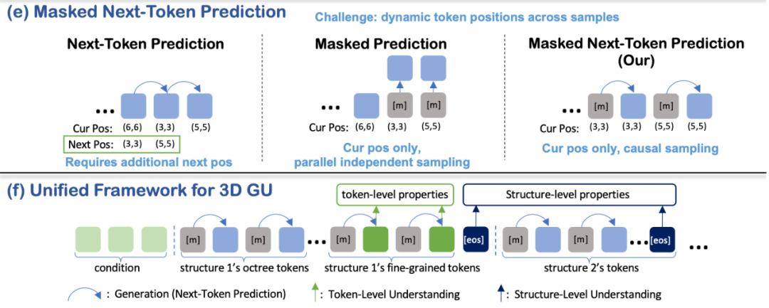 基于 Masked Next-Token Prediction,该论文构建了一个统一的自回归框架,使得 3D 结构的生成与理解任务能够在单一模型内同时进行。