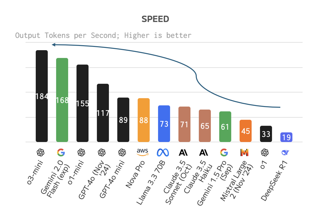 不过,o3-mini 的最大优势在于低延迟。在推理速度上,o3-mini 的 token 输出速度比 DeepSeek-R1 快约 3 倍,这对于需要快速响应的应用场景来说尤为重要。