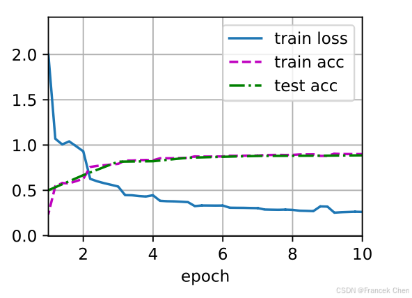 lr, num_epochs, batch_size = 0.1, 10, 128
