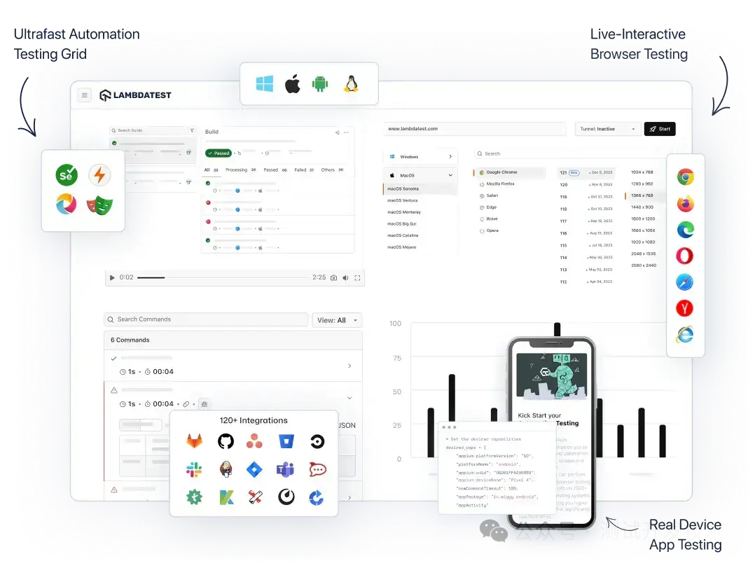 关键特性: 可实时在 2000 + 种浏览器与设备组合上进行测试;支持 Selenium、Cypress 等多种主流测试框架;而且它的人工智能增强功能 HyperExecute 能够优化测试过程,提供诸如测试编排、根本原因分析、视觉测试等功能,帮助开发人员和测试人员更高效地识别和解决问题。其测试编排功能可以自动对环境中的测试进行分组和分配,根据过去的故障确定优先级,从而加快问题的识别速度。