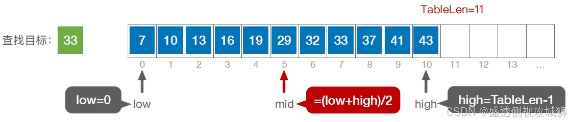 mid=(low+high)/2; //取中间位置