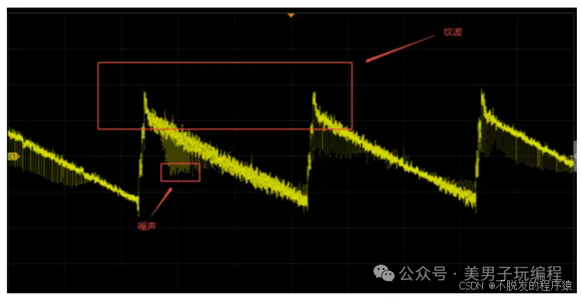 尽管电源经过滤波处理,但由于滤波器的性能限制,依然会存在一定的高频波动,这就是纹波。