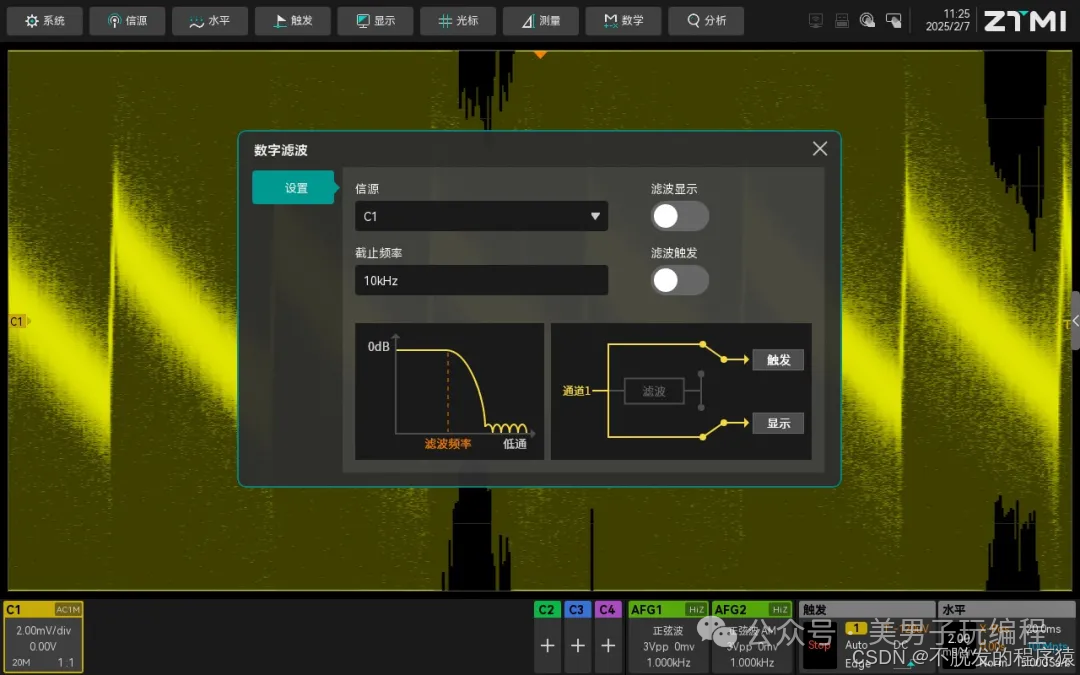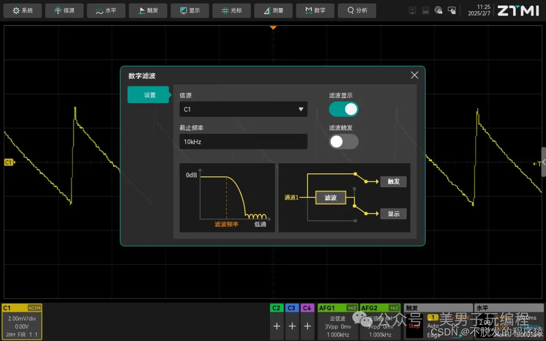 如果信号中有明显的高频噪声,可以利用示波器的FIR滤波功能。