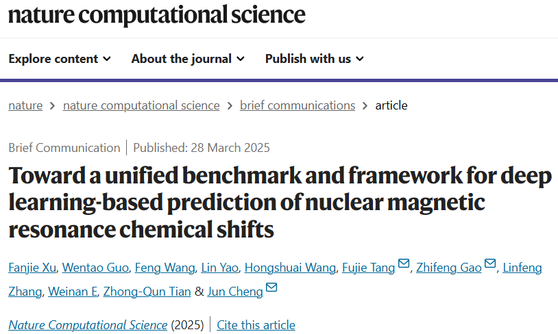 Xu, F., Guo, W., Wang, F. et al. Toward a unified benchmark and framework for deep learning-based prediction of nuclear magnetic resonance chemical shifts. Nat Comput Sci (2025).