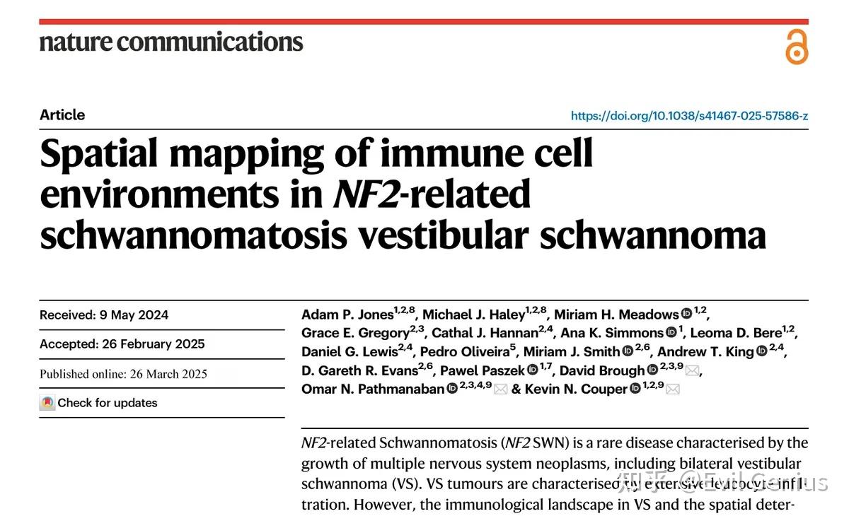 空间文献分享---NF2相关神经鞘瘤病前庭神经鞘瘤中免疫细胞环境的空间定位