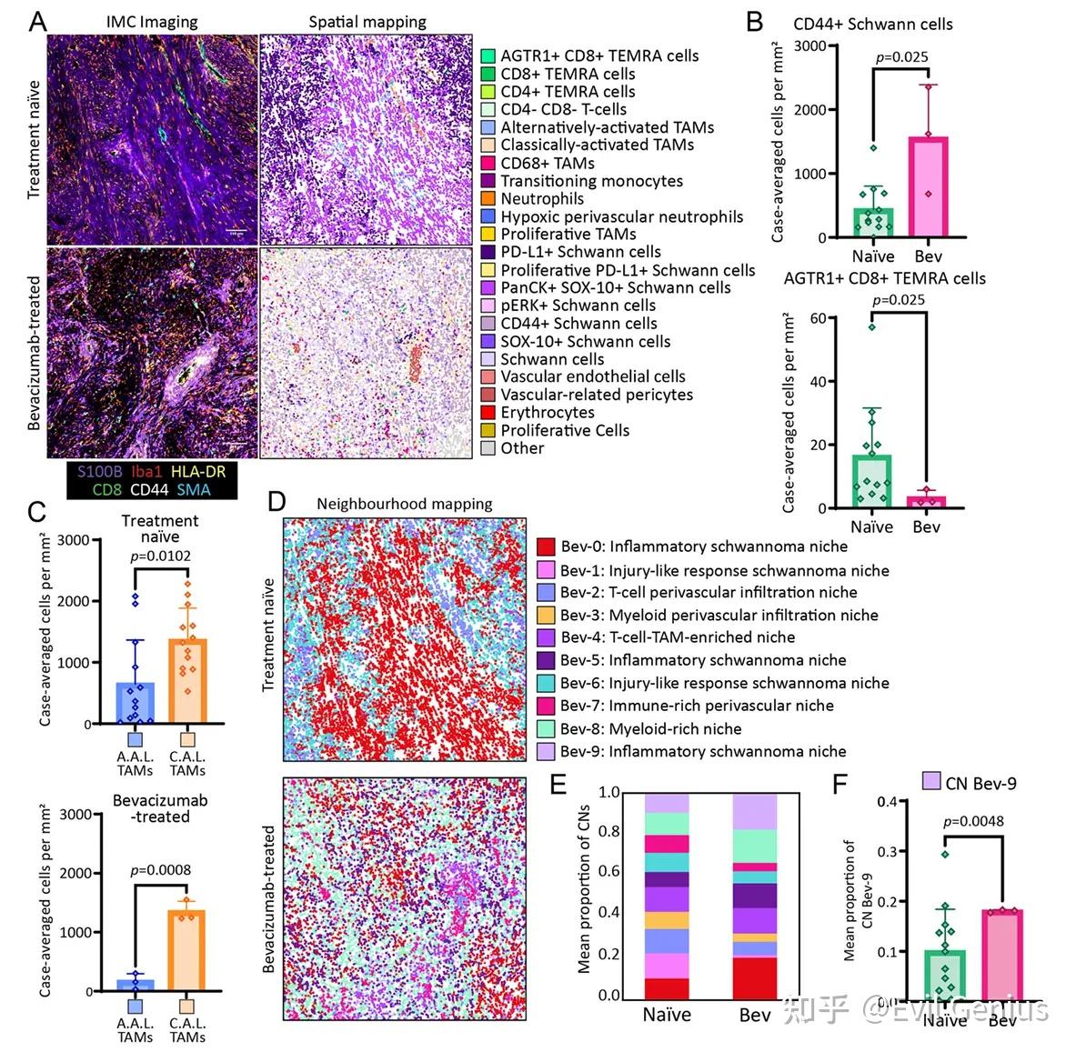 经历贝伐单抗治疗失败的患者的贝伐单抗治疗的肿瘤富含可指示ECM相关重塑过程的Schwann细胞群,以及VS免疫系统的潜在变化。