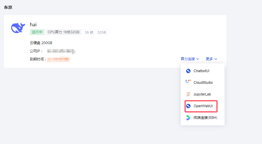 1)这里我们算力连接选择OpenWebUI。