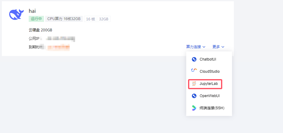 你可以根据自己的需求修改游戏内容,比如增加更多场景、剧情或改进战斗系统。1)这里我们算力连接我们再选择JupyterLab。